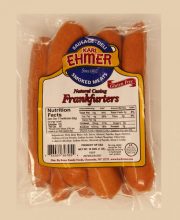 Our famous natural casing pork and beef frankfurters. Each package contains 8 frankfurters.